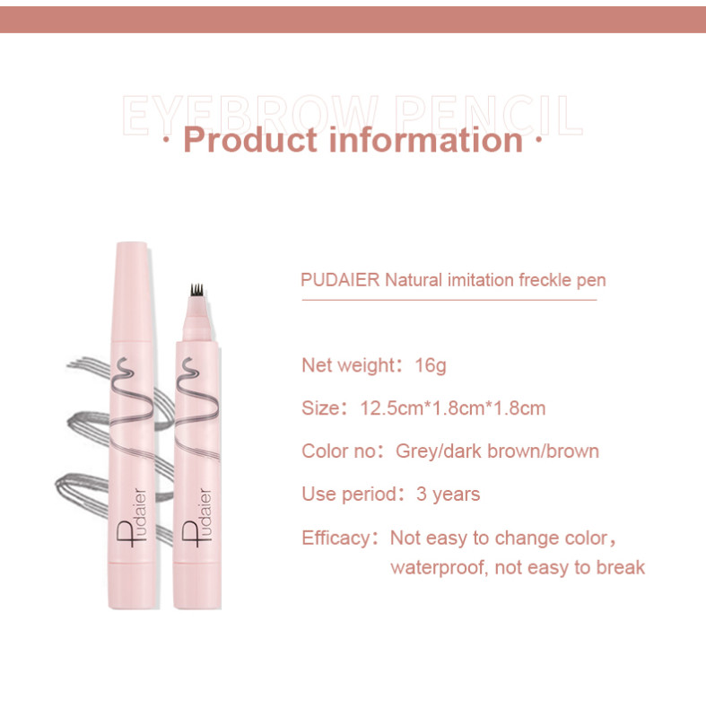 اسم العلامة التجارية: Pudaier الميزة: مقاوم للماءالنوع: قلم الحواجبمدة الصلاحية : 3 سنواتالميزة: مقاوم للماء