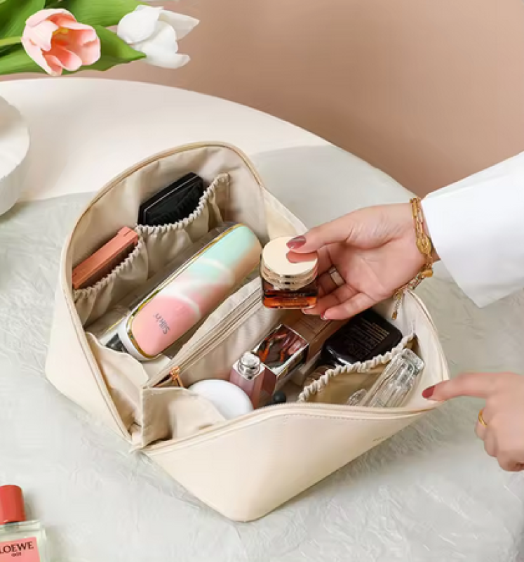 حقيبة جلد واسعة وجميله مع مسكة بالوان جميلة لمستلزماتك وادواتك